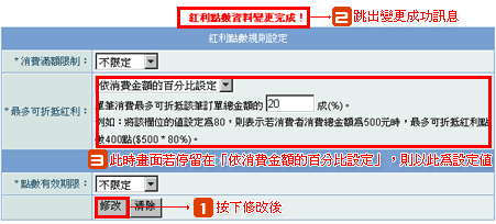建議!若有設定「最多可折抵紅利」,可在會員需知或是購物需知中加註提醒會員,以免造成客訴。 |