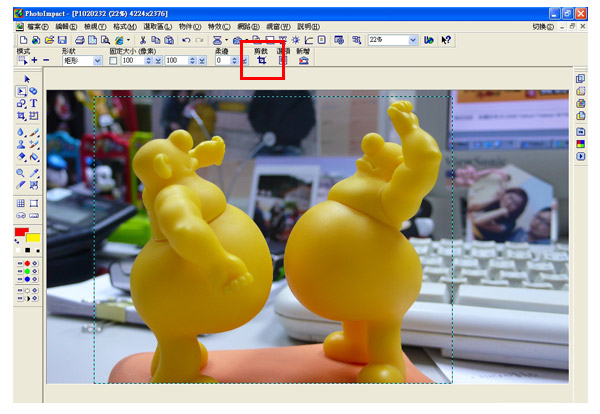 2、用滑鼠拉選所要的圖片範圍(畫面虛線顯示的區塊)。