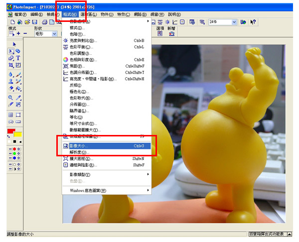 1、點選功能列的『格式』→『影像大小』。