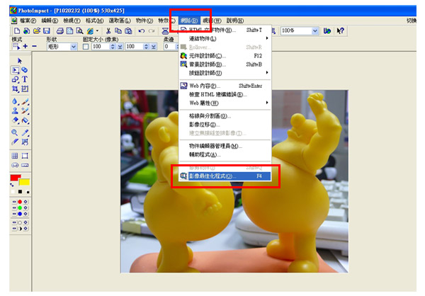 1、功能列『網路』→『影像最佳化程式』(按下快速鍵「F4」)